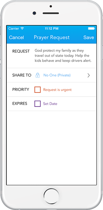In a single app, a single screen, a single feed, you can view, create, share and pray for all of your Prayer Partners. Notify them immediately via push notifications, or create a prayer request just for you.